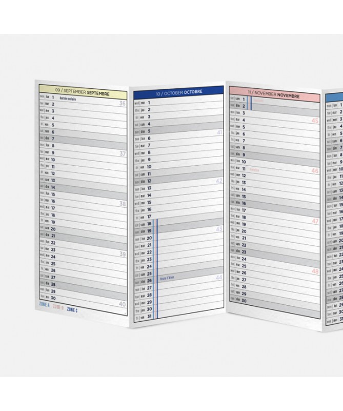 Un calendrier sur 12 mois de Janvier 2026 à Décembre 2026 pour une visibilité maximale. Grâce à sa forme accordéon vous pourrez l'emporter partout avec vous, le feuilleter comme un carnet ou l'afficher au dessus de votre bureau.