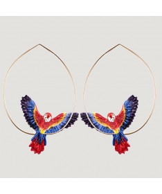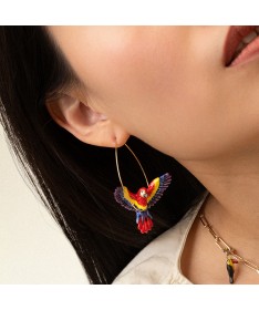Grandes créoles PERROQUET ARA rouge