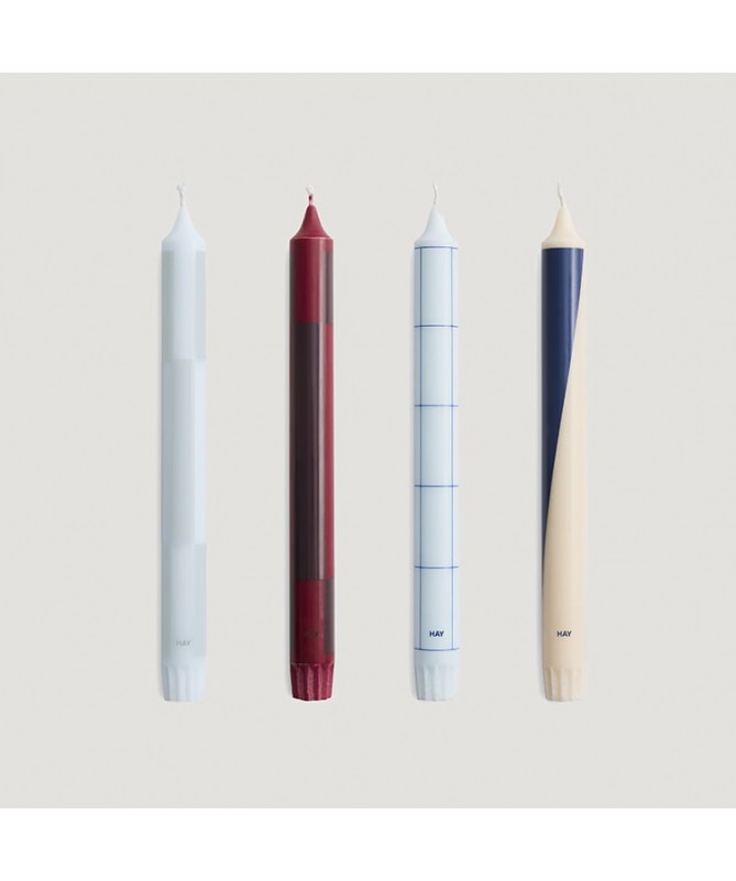 Lot de 4 bougies PATTERN - Bleu et Bordeaux