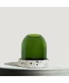Q de Bouteilles collabore ici avec Malakio pour transformer les morceaux de verre en une matière minérale des plus élégantes.