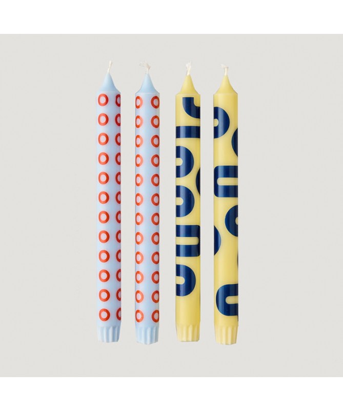 Lot de 4 bougies - Bleu ciel / Jaune