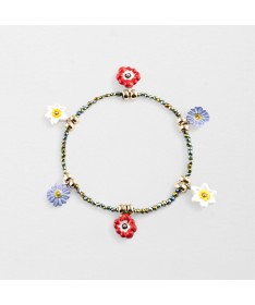 Bracelet perles d'hématite FLEURS