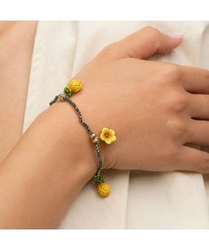 Bracelet perles d'hématite HIBISCUS & ANANAS