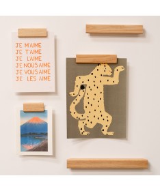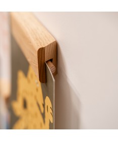 Gllu a encore frappé avec un objet aussi simple qu'ingénieux et élégant ! Ce support en bois permet d'afficher toutes vos illustrations peu importe leur format, qu'il soit en portrait ou en paysage. Le support se fixe facilement grâce aux adhésifs fournis ( même pas besoinde perceuse ni marteau !). Il vous suffit ensuite de glisser l'affiche dans l'encoche et de venir abaisser le tourillon qui viendra la bloquer. En plus d'être facile à utiliser chaque support peu convenir à plusieurs formats, vous n'aurez donc plus d'excuse pour ne pas afficher le dernier dessin de votre enfant, la belle illustration trouvée au musée ou le faire-part reçu hier.