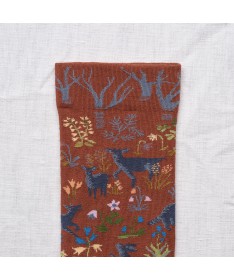 Les chaussettes Bonne Maison sont en coton égyptien pour les pieds fragiles. Leur fil double est chaud et lisse pour éviter les bouloches. Leur maille est fine pour le confort et la précision des motifs. Dessinées par Béatrice Crécy, ces chaussettes racontent des histoires aux univers tantôt poétiques tantôt farfelues. Chaque collection a son propre univers aux couleurs subtilement associées pour attiser notre œil, envelopper nos pieds de bonheur et faire pétiller nos tenues.