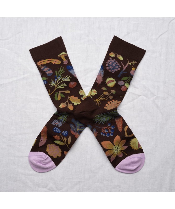 Les chaussettes Bonne Maison sont en coton égyptien pour les pieds fragiles. Leur fil double est chaud et lisse pour éviter les bouloches. Leur maille est fine pour le confort et la précision des motifs. Dessinées par Béatrice Crécy, ces chaussettes racontent des histoires aux univers tantôt poétiques tantôt farfelues. Chaque collection a son propre univers aux couleurs subtilement associées pour attiser notre œil, envelopper nos pieds de bonheur et faire pétiller nos tenues.