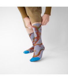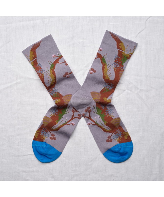 Les chaussettes Bonne Maison sont en coton égyptien pour les pieds fragiles. Leur fil double est chaud et lisse pour éviter les bouloches. Leur maille est fine pour le confort et la précision des motifs. Dessinées par Béatrice Crécy, ces chaussettes racontent des histoires aux univers tantôt poétiques tantôt farfelues. Chaque collection a son propre univers aux couleurs subtilement associées pour attiser notre œil, envelopper nos pieds de bonheur et faire pétiller nos tenues.