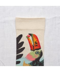 Les chaussettes Bonne Maison sont en coton égyptien pour les pieds fragiles. Leur fil double est chaud et lisse pour éviter les bouloches. Leur maille est fine pour le confort et la précision des motifs. Dessinées par Béatrice Crécy, ces chaussettes racontent des histoires aux univers tantôt poétiques tantôt farfelues. Chaque collection a son propre univers aux couleurs subtilement associées pour attiser notre œil, envelopper nos pieds de bonheur et faire pétiller nos tenues.