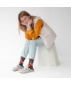 Les chaussettes Bonne Maison sont en coton égyptien pour les pieds fragiles. Leur fil double est chaud et lisse pour éviter les bouloches. Leur maille est fine pour le confort et la précision des motifs. Dessinées par Béatrice Crécy, ces chaussettes racontent des histoires aux univers tantôt poétiques tantôt farfelues. Chaque collection a son propre univers aux couleurs subtilement associées pour attiser notre œil, envelopper nos pieds de bonheur et faire pétiller nos tenues.