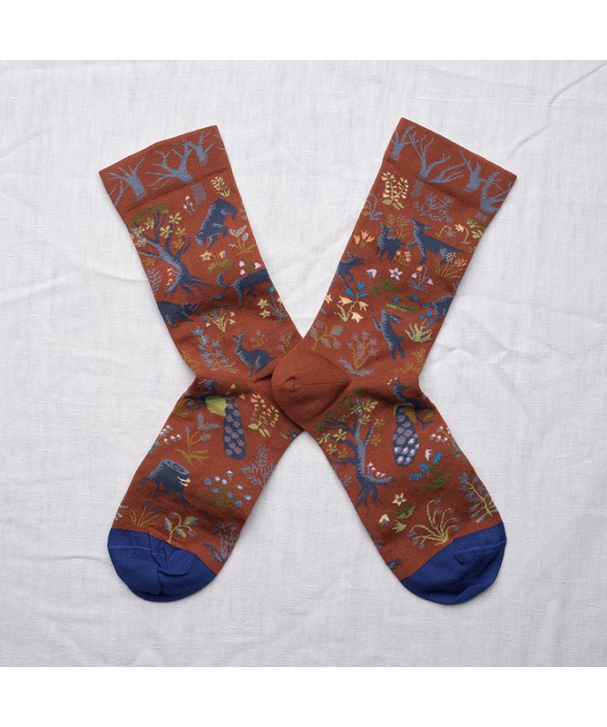 Les chaussettes Bonne Maison sont en coton égyptien pour les pieds fragiles. Leur fil double est chaud et lisse pour éviter les bouloches. Leur maille est fine pour le confort et la précision des motifs. Dessinées par Béatrice Crécy, ces chaussettes racontent des histoires aux univers tantôt poétiques tantôt farfelues. Chaque collection a son propre univers aux couleurs subtilement associées pour attiser notre œil, envelopper nos pieds de bonheur et faire pétiller nos tenues.