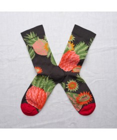 Les chaussettes Bonne Maison sont en coton égyptien pour les pieds fragiles. Leur fil double est chaud et lisse pour éviter les bouloches. Leur maille est fine pour le confort et la précision des motifs. Dessinées par Béatrice Crécy, ces chaussettes racontent des histoires aux univers tantôt poétiques tantôt farfelues. Chaque collection a son propre univers aux couleurs subtilement associées pour attiser notre œil, envelopper nos pieds de bonheur et faire pétiller nos tenues.