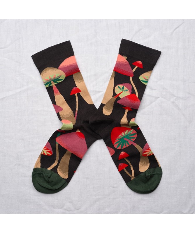 Les chaussettes Bonne Maison sont en coton égyptien pour les pieds fragiles. Leur fil double est chaud et lisse pour éviter les bouloches. Leur maille est fine pour le confort et la précision des motifs. Dessinées par Béatrice Crécy, ces chaussettes racontent des histoires aux univers tantôt poétiques tantôt farfelues. Chaque collection a son propre univers aux couleurs subtilement associées pour attiser notre œil, envelopper nos pieds de bonheur et faire pétiller nos tenues.