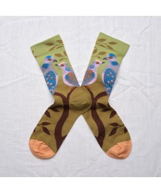Les chaussettes Bonne Maison sont en coton égyptien pour les pieds fragiles. Leur fil double est chaud et lisse pour éviter les bouloches. Leur maille est fine pour le confort et la précision des motifs. Dessinées par Béatrice Crécy, ces chaussettes racontent des histoires aux univers tantôt poétiques tantôt farfelues. Chaque collection a son propre univers aux couleurs subtilement associées pour attiser notre œil, envelopper nos pieds de bonheur et faire pétiller nos tenues.