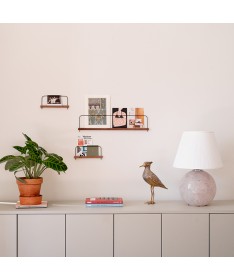 L'étagère Super-pose a été conçue pour mettre en avant toutes vos belles illustrations, photos, pochettes de vinyles ou magazines. Aussi légère visuellement que physiquement, elle s'installe très facilement grâce aux clous en laiton fournis. Vous pourrez également régler la tige en laiton à la hauteur que vous souhaitez. Le plus : Elles sont entièrement conçues, fabriquées artisanalement et distribuées par la talentueuse équipe de Gllu en Normandie.