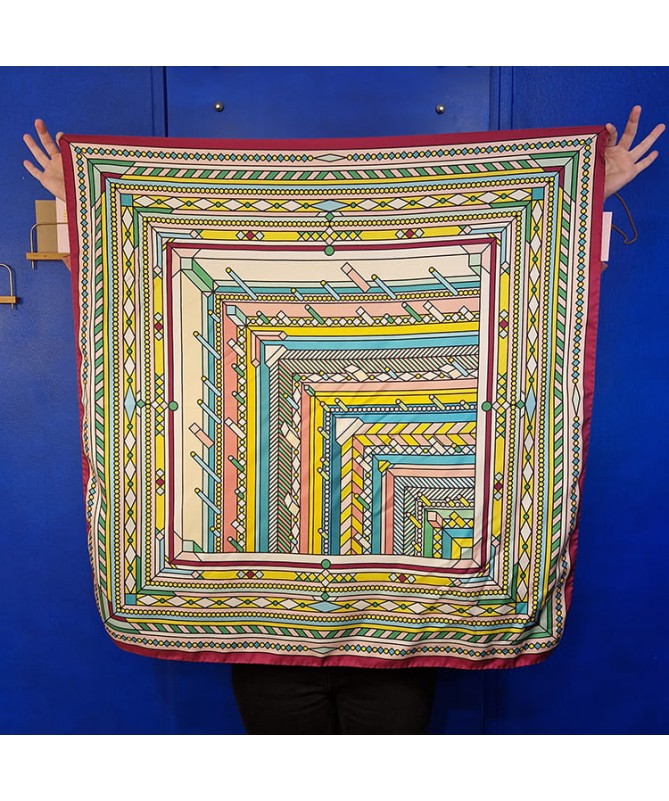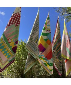 Les foulards Aire de Jeu associent à merveille les volumes, les lignes et les couleurs pour un résultat pétillant ! Les motifs géométriques aux couleurs vibrantes apportent une lumière incroyable aux étoles, au visage et au moral ! Et pour parfaire le tout, les foulards sont fabriqués en Italie et en soie pour un confort incomparable.