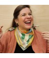 Les bandanas Aire de Jeu associent à merveille les volumes, les lignes et les couleurs pour un résultat pétillant ! Leurs motifs géométriques aux couleurs vibrantes apportent une lumière incroyable aux étoles, au visage et au moral ! Et pour parfaire le tout, les foulards sont fabriqués en Italie dans un coton doux et délicat.