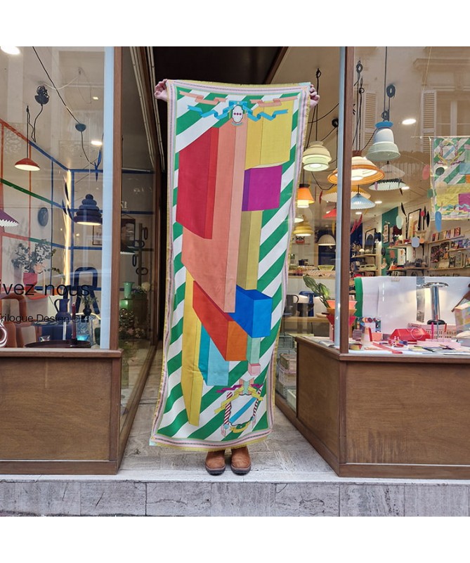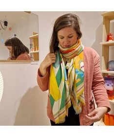 Les écharpes Aire de Jeu associent à merveille les volumes, les lignes et les couleurs pour un résultat pétillant ! Leurs motifs géométriques aux couleurs vibrantes apportent une lumière incroyable aux étoles, au visage et au moral ! Et pour parfaire le tout, les écharpes sont fabriqués en Italie dans un doux mélange de soie et laine.