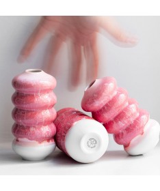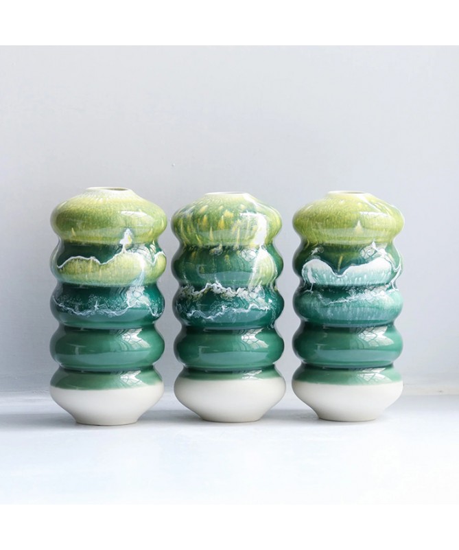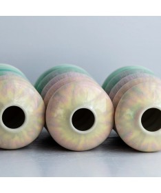 Chaque vase est façonné au tour et émaillée à la main formant des paysages graphique étonnants. Chaque vase est unique et précieux et se contentera d’une simple étagère, un brin de fleurs ou quelques herbes pour être mis en valeur.